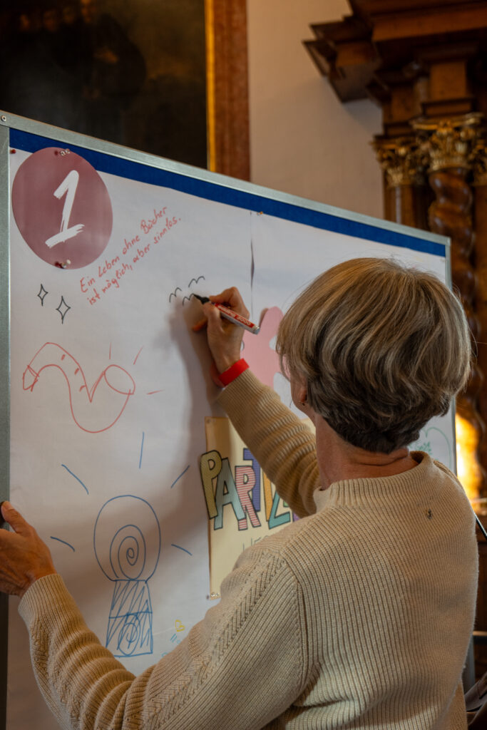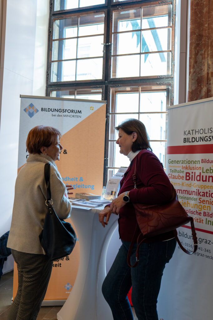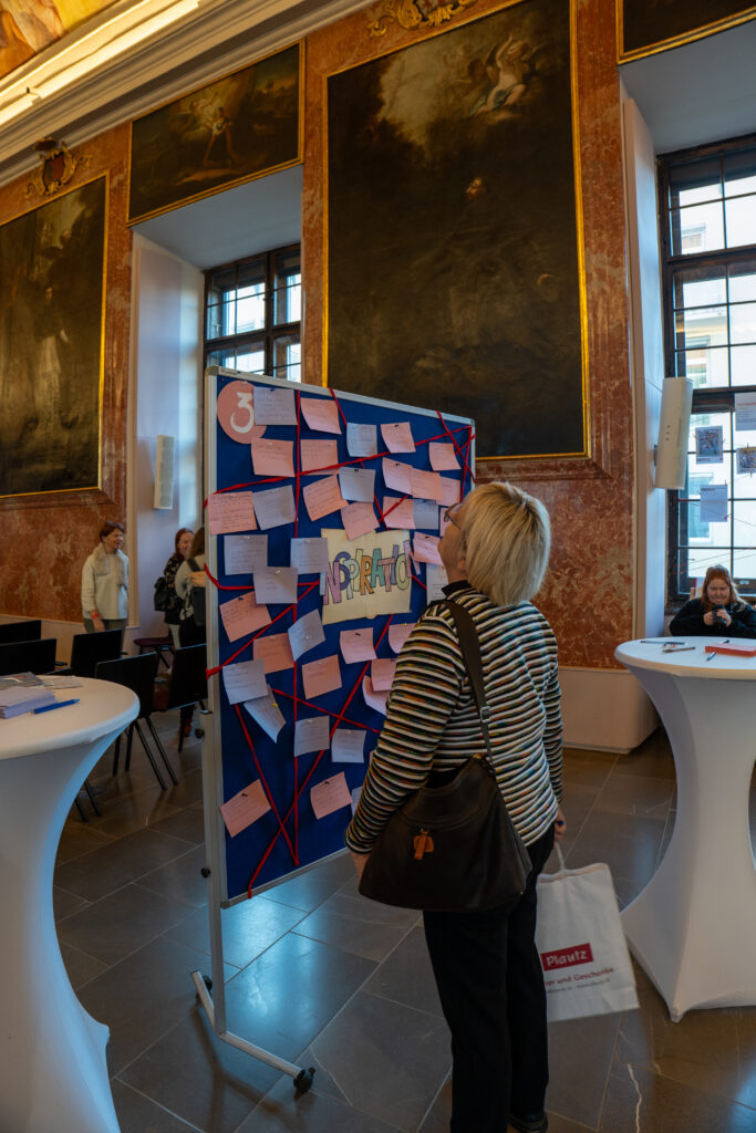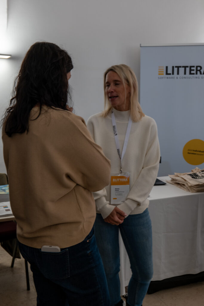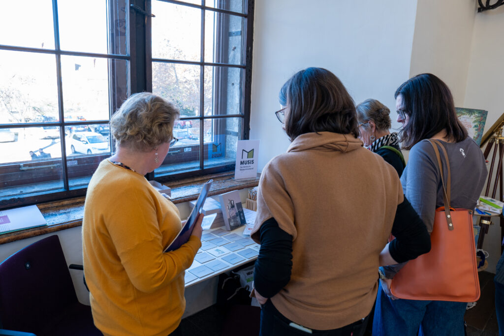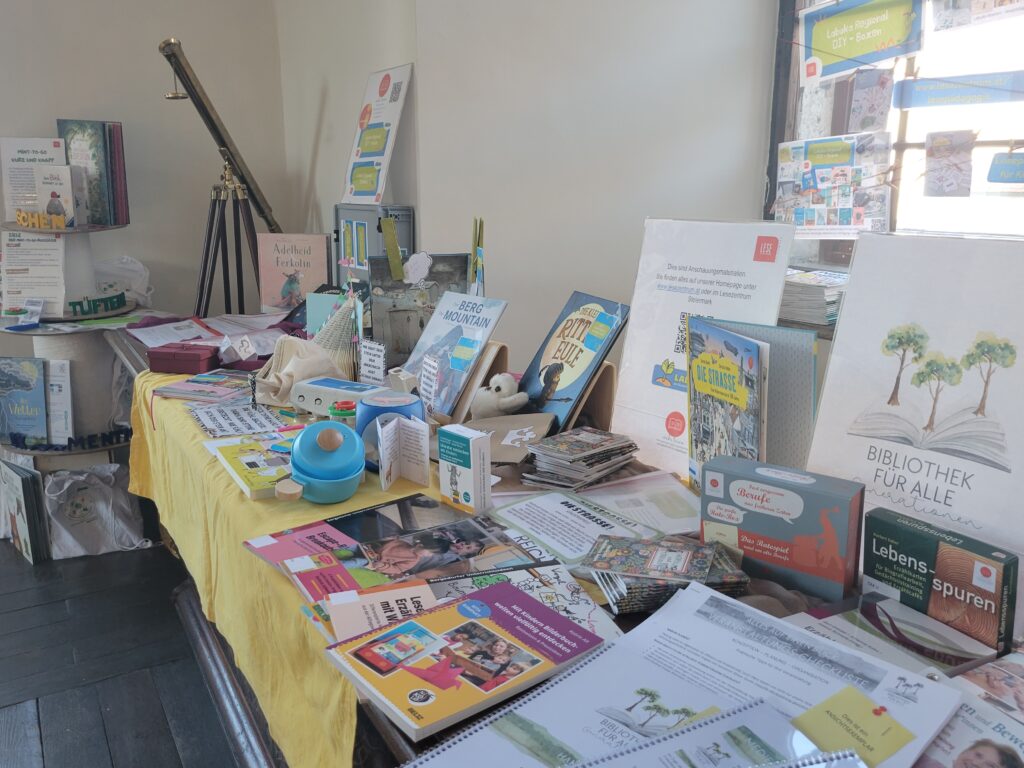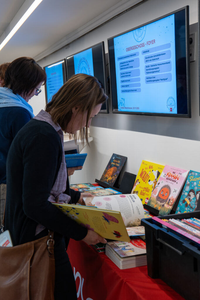 In der Ausstellung wurden Beispiele aus steirischen Bibliotheken, die das Tagungsthema bereits in die Realität umsetzen, gezeigt. Zur aktiven Teilhabe wurden die Teilnehmerinnen und Teilnehmer in der Ideenwerkstatt der HLW Schrödinger aufgerufen. Für Austausch, Impulse und Vernetzung wurden auch die zahlreichen Informationsstände, Firmenpräsentationen und Materialtische genutzt.