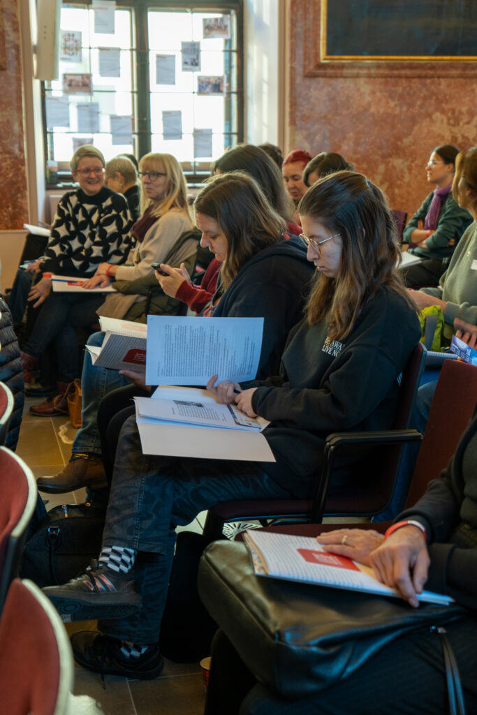 Ein voller Minoritensaal als Zeichen des großen Interesses seitens der Bibliothekarinnen und Bibliothekare an der Herbsttagung 2025 des Lesezentrums Steiermark! Fast 170 Personen aus mehr als 70 steirischen Bibliotheken und viele Kooperationspartner erlebten in angenehmer Atmosphäre einen sehr informativen und inspirierenden Tag mit Input, Austausch und guten Gesprächen.