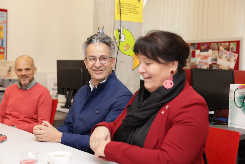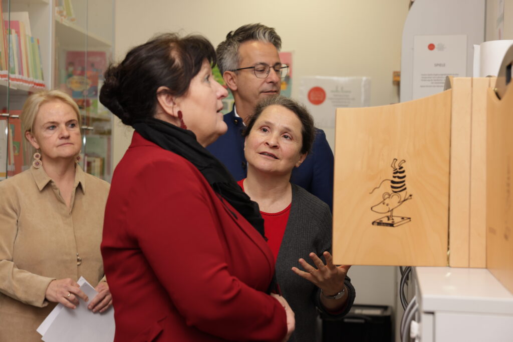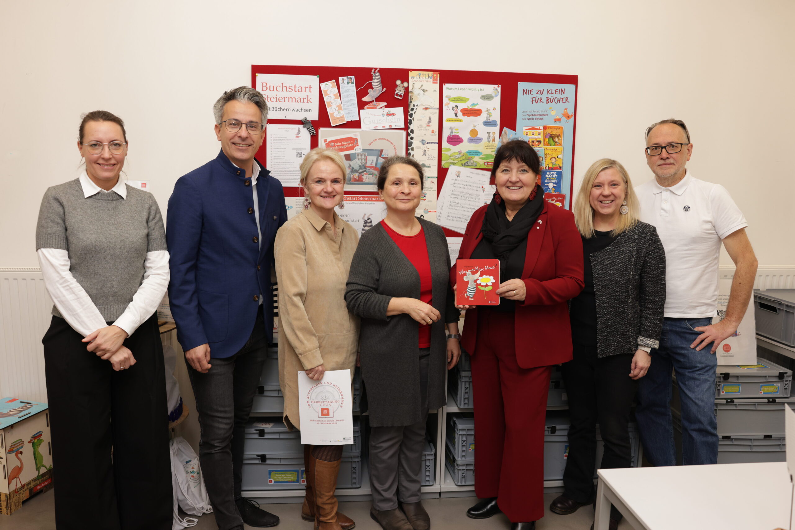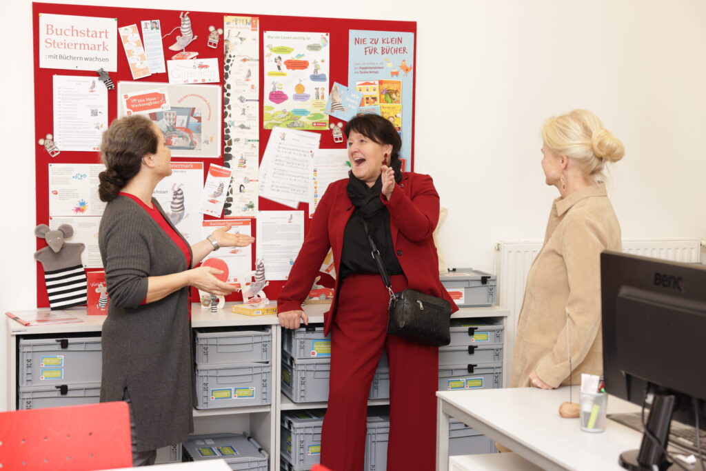 Am 26. November 2025 besuchte Frau Landeshauptmann-Stellvertreterin Manuela Khom gemeinsam mit Grazer Stadtrat Kurt Hohensinner das Lesezentrum Steiermark. Das Team präsentierte die verschiedenen Aufgaben der Fach- und Servicestelle für steirische Bibliotheken und führte durch die Büroräumlichkeiten.