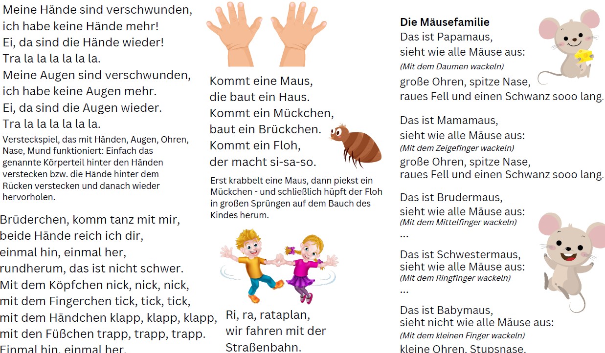 Für Ihre Buchstart Steiermark-Veranstaltung finden Sie hier einige Kinderreime und -lieder. Besonders geeignet für die DIY Box „Was mag die Maus?“